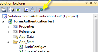 在Forms认证中, ASP.NET为我们提供了一个角色管理器(role provider)我们可以通过它来方便和将我们的角色信息存储到SQL中,并且进行管理。我们只需要点击一个按钮即可: