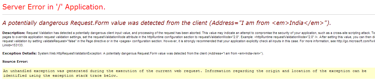 当然,有些时候我们需要允许用户输入html,那么只要在我们的Action上打上ValidateInput(false)即可。