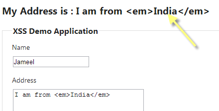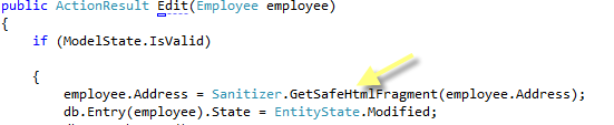 如上图所示,这样我们又遇到了另外一个问题。在ASP.NET MVC中razor默认会对所有输出进行html编码。这是ASP.NET MVC针对XSS攻击的另一道防火墙。通过为属性打上AllowHtml属性,我们可以允许某一个属性包含html的值,这样我们就可以移除Action上的ValidateInput属性。通过Html.Raw 我们可以将html输出到客户端。
