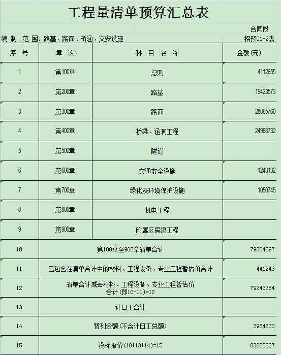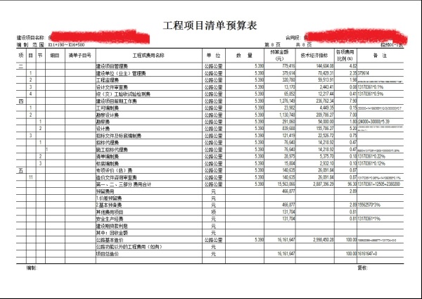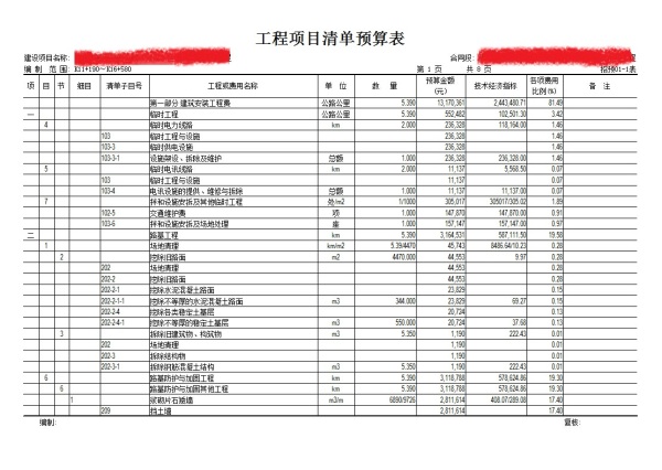 一个公路项目的预算表格(定额未显示)大概是这样的,这是建安费部分: