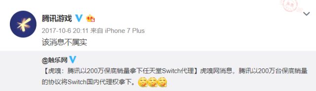 2017 年 6 日,网传“腾讯以 200 万台保底销售的协议拿下 NS 国内代理权”。