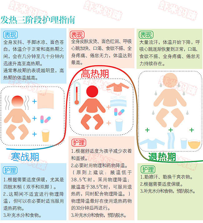当手脚发热时,适当脱掉衣物,进行合理的物理降温(温水拧干的毛巾,擦拭额头、手脚),目的是为了让宝宝舒服点。