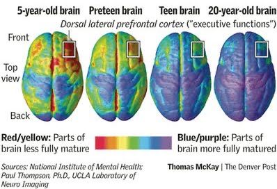 孩子爱发脾气,是因为他的大脑发育中,情绪脑比理智脑的发育快得多。成年人可以用理智来调节自己的心情,但 20 岁以前,人们的理智脑是没有完全成熟的,所以当孩子情绪上来时,并不是他不懂事,而是他的大脑还没发展到那个阶段。
