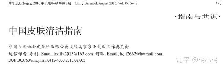 [4][指南]中国皮肤清洁指南[J]. 中华皮肤科杂志:2016,49, 2016, 49(8):537-540.
