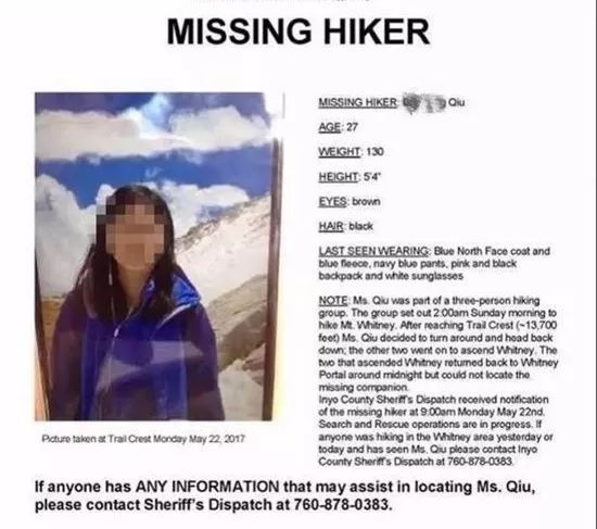 5 月 21 日,在美国南加州大学留学的 27 岁杭州女孩 Cindy,与两名朋友一起攀登惠特尼山。