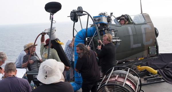 此次的《敦刻尔克》中,诺兰更是将空战镜头完全实拍处理,将 IMAX 摄影机安装在战斗机上进行拍摄,可谓前无古人后无来者。在拍摄海滩上 40 万等待撤离的士兵时,明明可以用 CG 技术来“做出”40 万人的效果,但诺兰却在片场放置了一排排的人形道具板,一些远景看似人很多的镜头,貌似就是这些道具板在起作用,古典作风尽显。