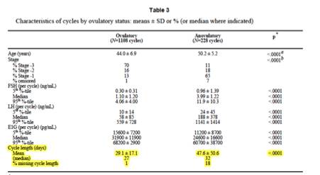 继续翻译成人话就是:月经周期长的妹子比月经周期短的妹子发生无排卵的几率更大