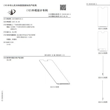 而没逼数的厂商,比如 OPPO,居然还去给「刘海屏」提交专利申请: