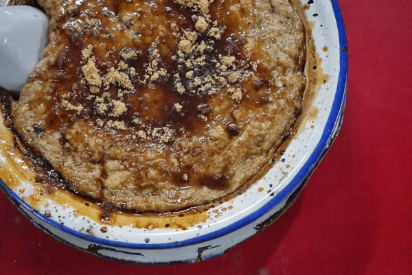 - 台州当地的做法是「仙人烧」,在薄底铁锅里垫上瓦片,将装有蛋液的搪瓷碗放到锅里干烧,全程无水,没有这样的环境,烤箱可以模拟相似的加热条件,简单又方便~