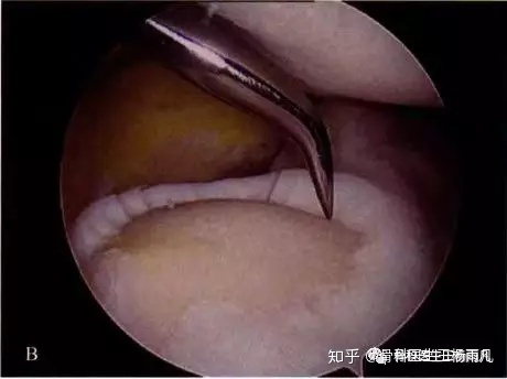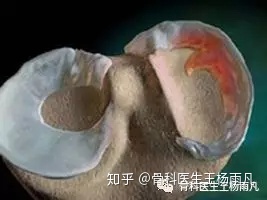 关节镜下成片脱落的软骨,露出了软骨下的骨头