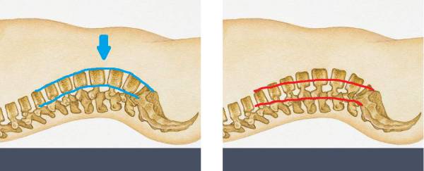 那么要保持脊柱相对自然放松的状态,床垫需要拥有合适的软度,来提供腰部所需要的形变。Fig 7 是一个相对理想的状态。