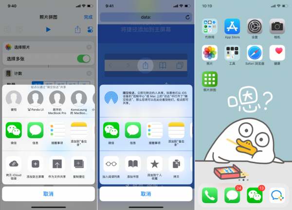 我们以刚刚获取的「照片拼图」为例,在捷径库中点击它,系统就会提示你选择需要拼接的图片,然后点击完成,系统就会自动帮你自动拼接起来了。
