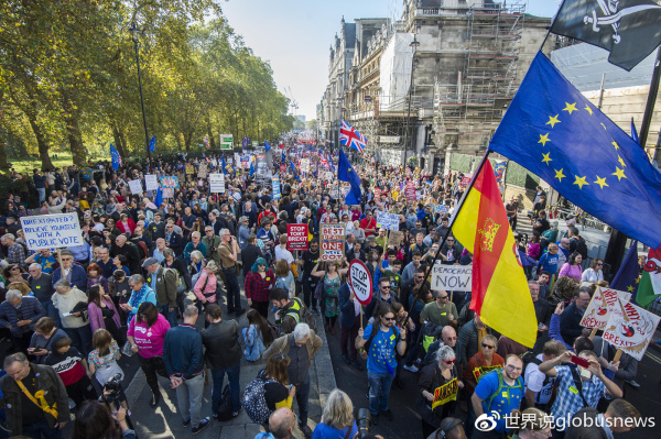 67 万人汇集在伦敦议会广场举行游行呼吁对脱欧最终协议举行全民投票 来源:视觉中国