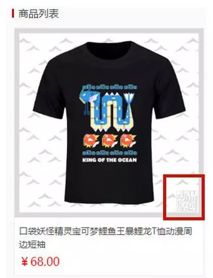 微博上一位用户很快发出一张淘宝截图——一件名称为“精灵宝可梦鲤鱼王暴鲤龙”的 T 恤正在一家淘宝店铺中售卖,印花设计和“LI WEN PEI”的冠军作品别无二致。而这时距离获奖结果还不满一小时,并无店家现场印制的可能。