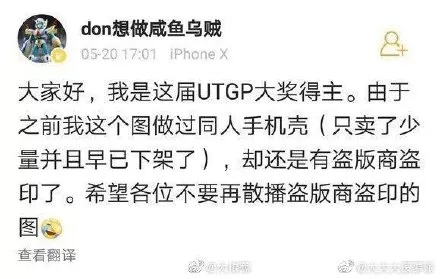 紧接着,又有网友发现:微博用户“唐唐_pepsi”在 2017 年 7 月 21 日曾发文“公开备份~”,而配图是正是“LI WEN PEI”在 UTGP2019 中获得冠军的设计。